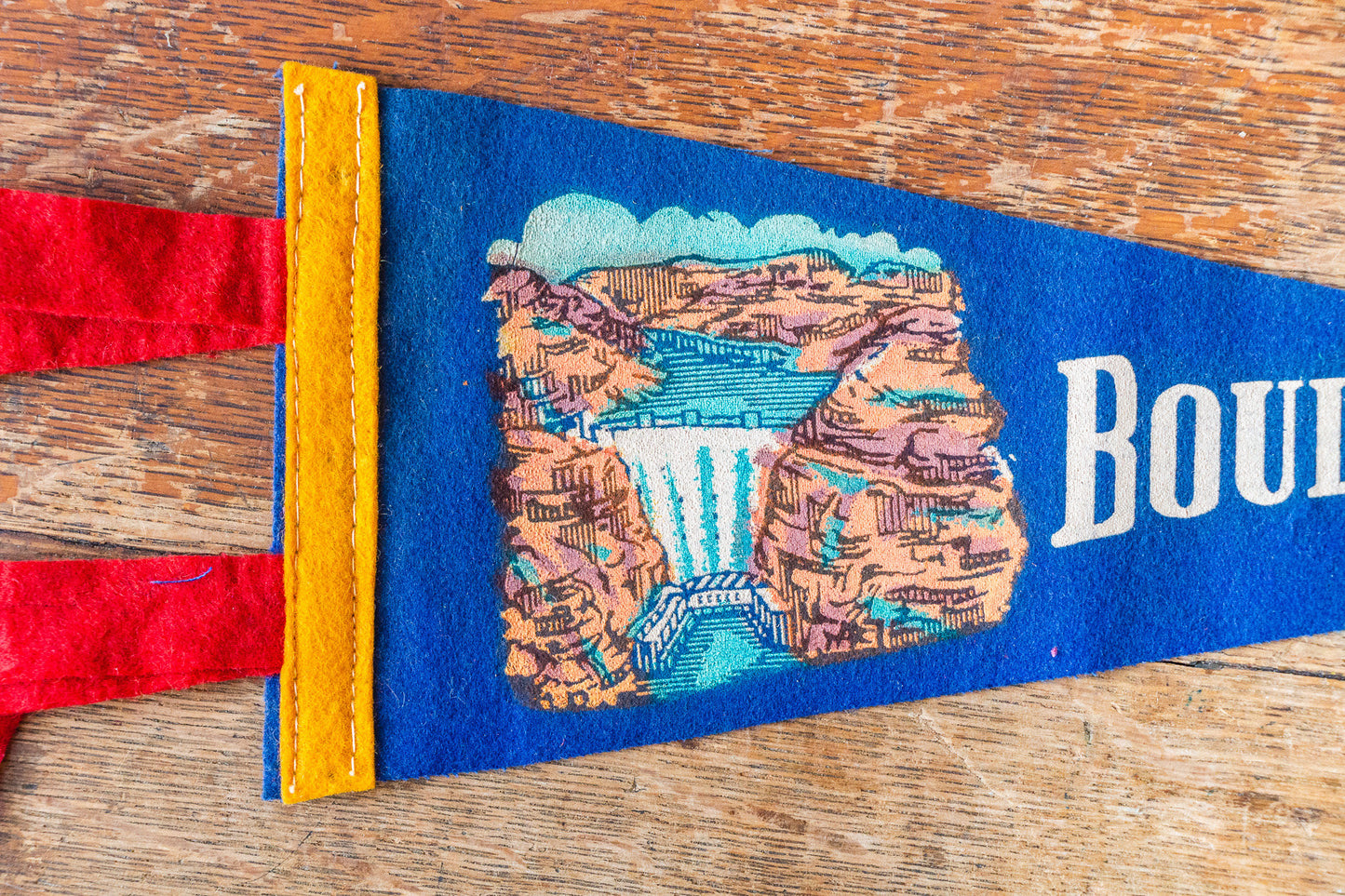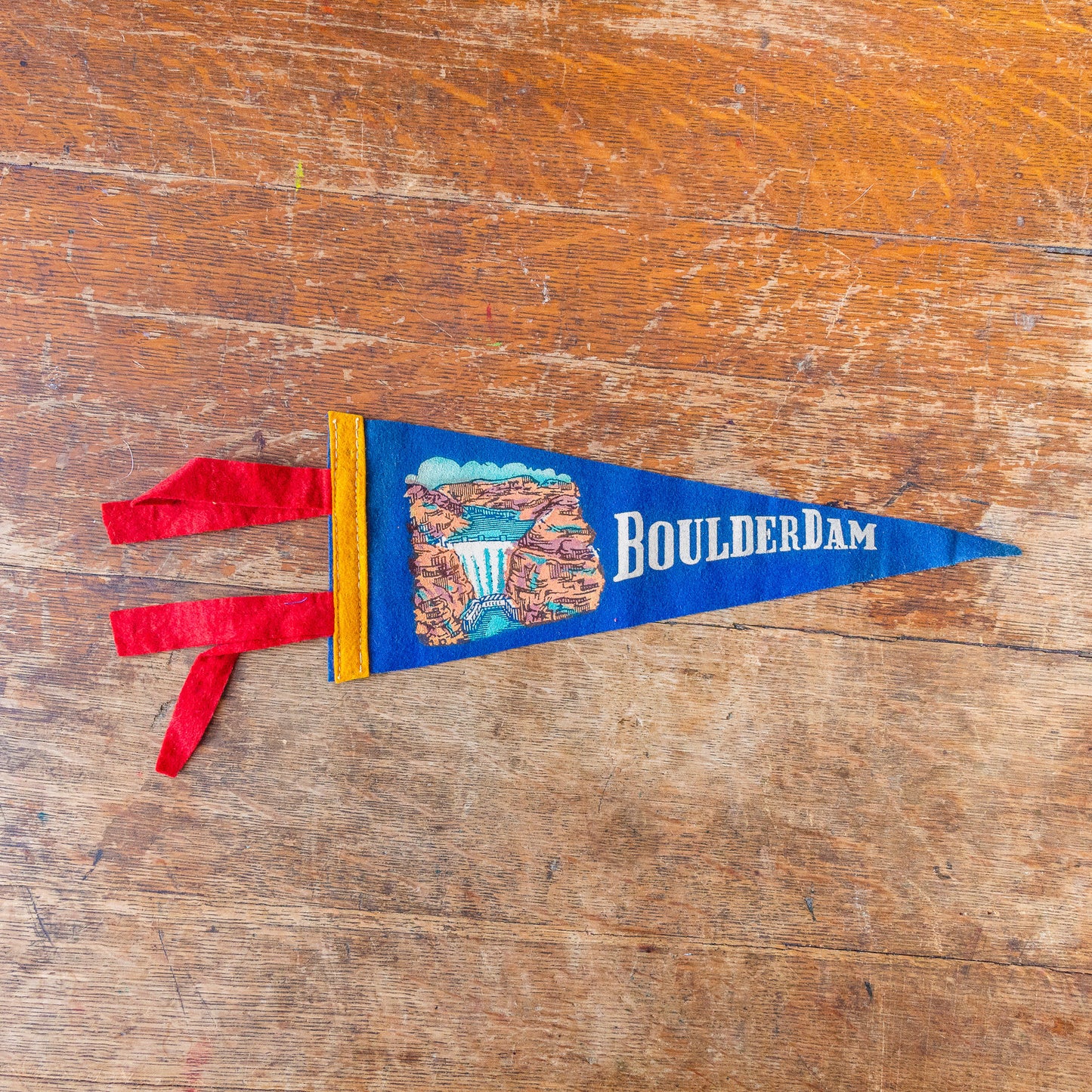 Boulder Dam Nevada Arizona Felt Pennant Vintage Blue Hoover Dam Souvenir