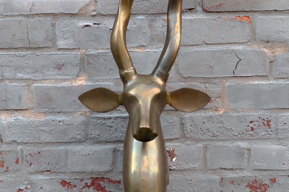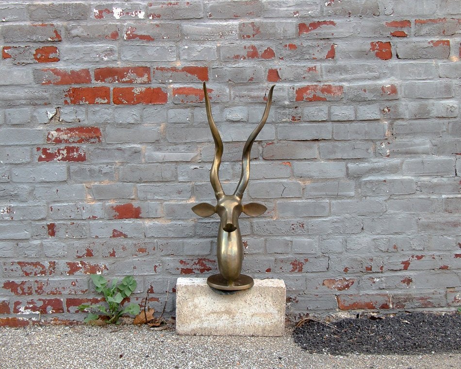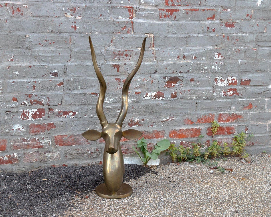Brass Impala Head Bust Vintage Large Brass Antelope Animal Decor