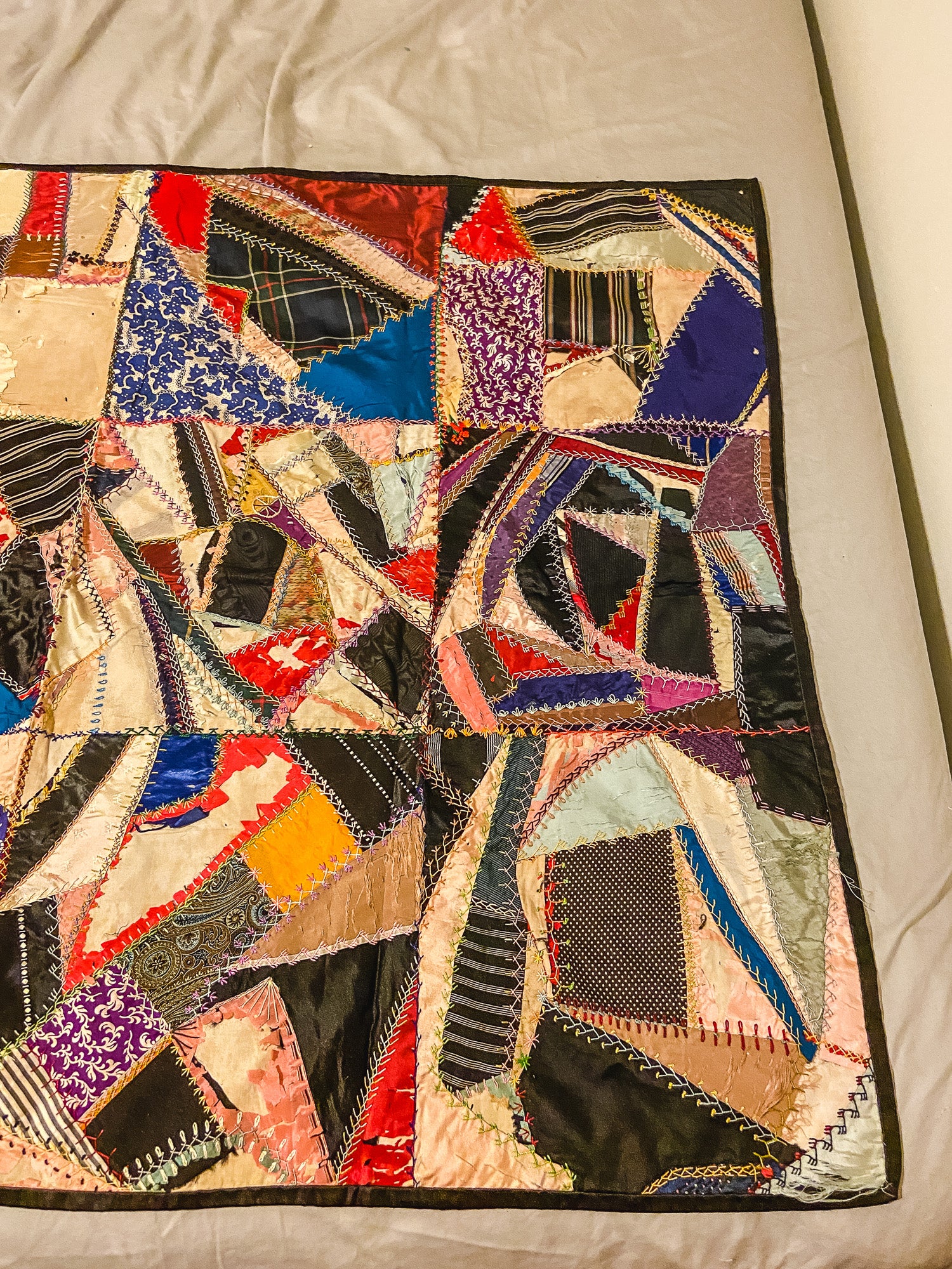 Crazy Hand Stitched Cutter Quilt Vintage Patchwork Slow Fashion Supplies