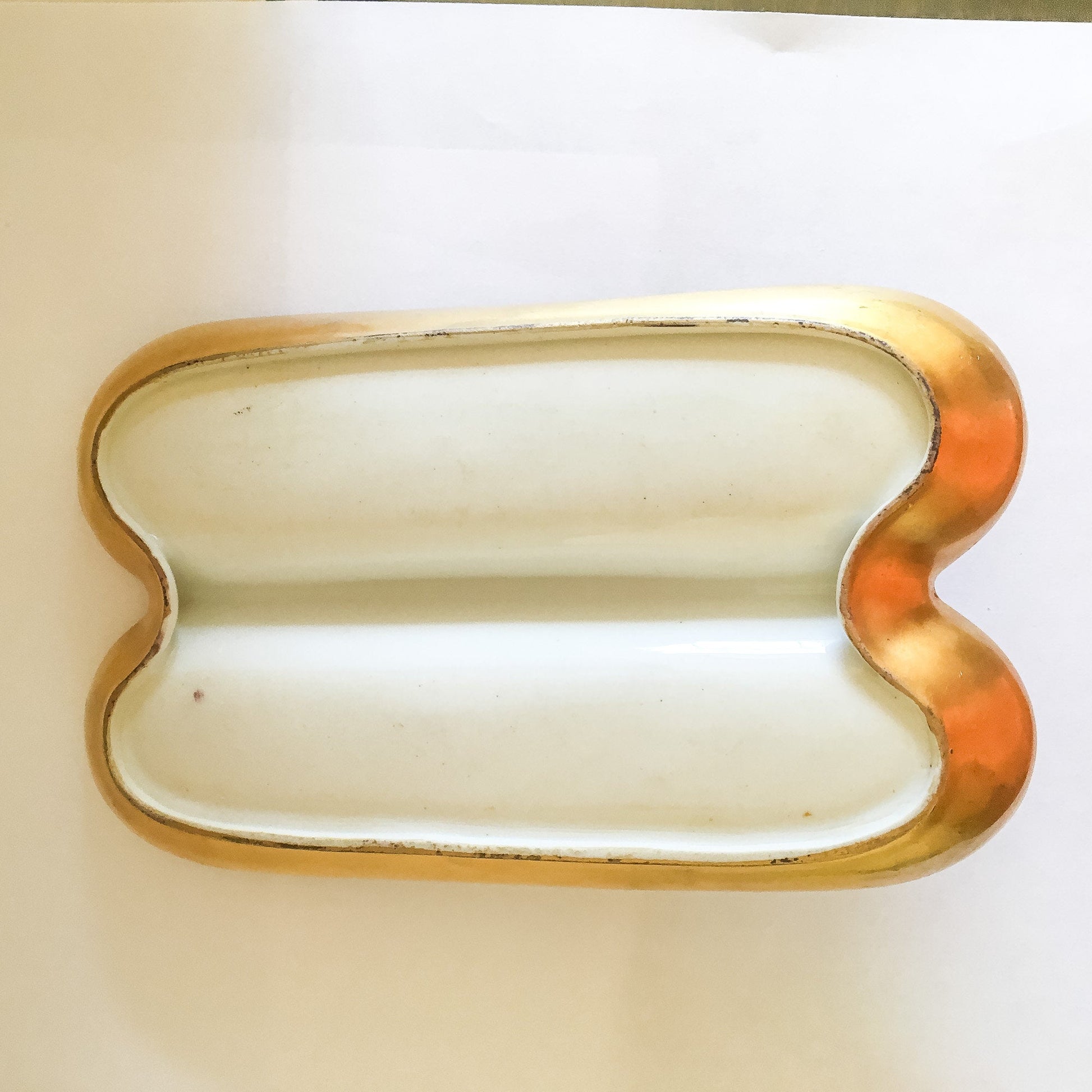 Golden Bird Ornate Relish Celery Tray Vintage Ceramic Pottery