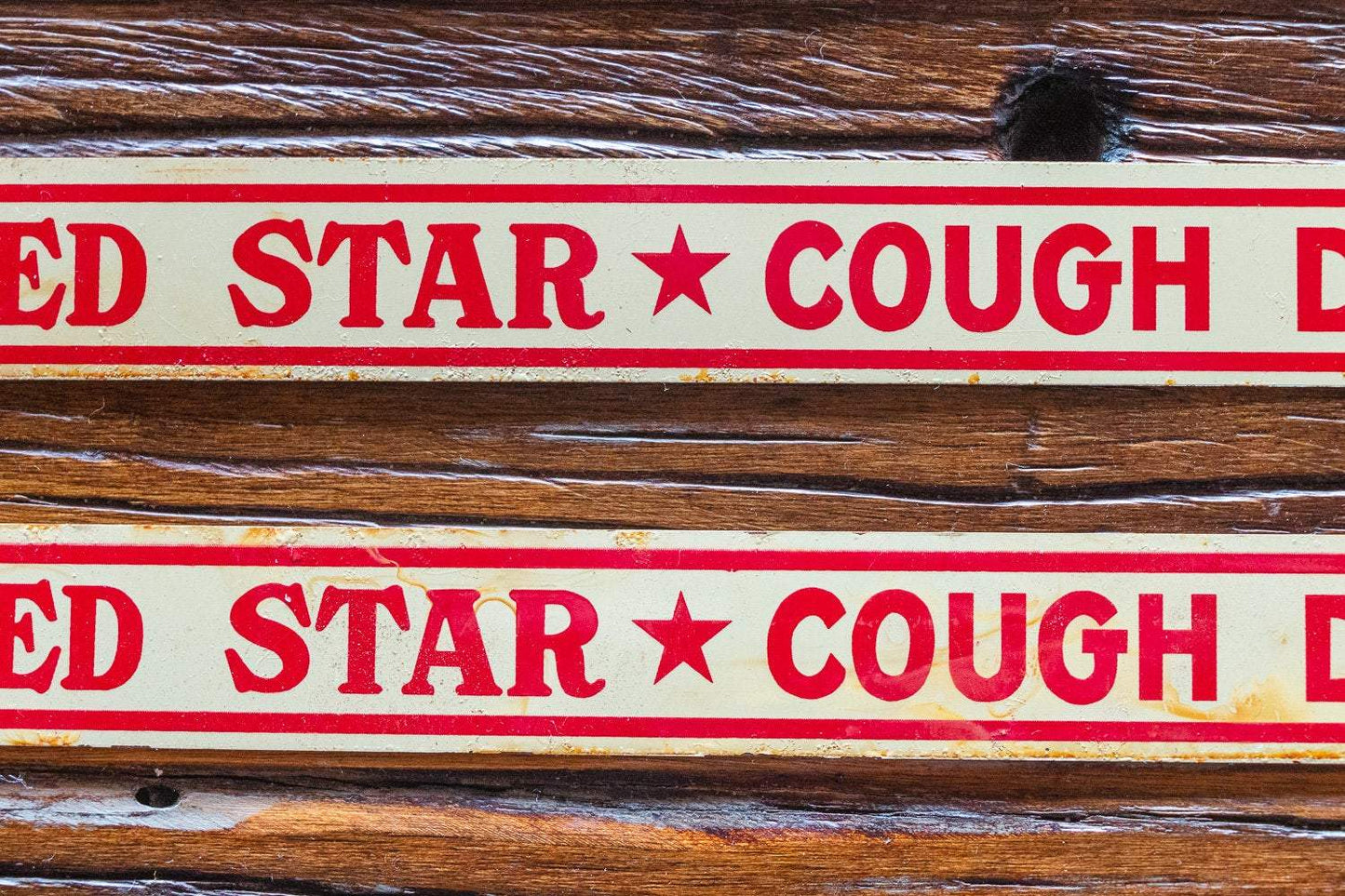 Red Star Cough Drop Sign Vintage Tin Strip Sign